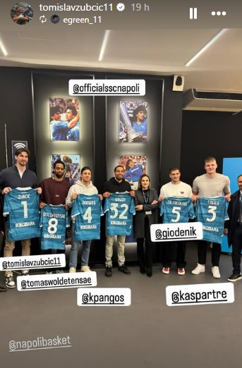 Ad assistere al match vinto 3-0 dalla squadra di Conte c'erano alcuni giocatori del Napoli Basket: Tomislav Zubcic, Tomas Woldetensae, Kevin Pangos, Erick Green, Andrea De Nicolao e Kaspar Treier. Per loro walk around e foto in panchina prima della partita, poi sono stati omaggiati con la nuova maglietta Partenope personalizzata e hanno assistito alla partita in tribuna. Di seguito una foto di gruppo postata in una 'storia' Instagram dal centro croato Zubcic.