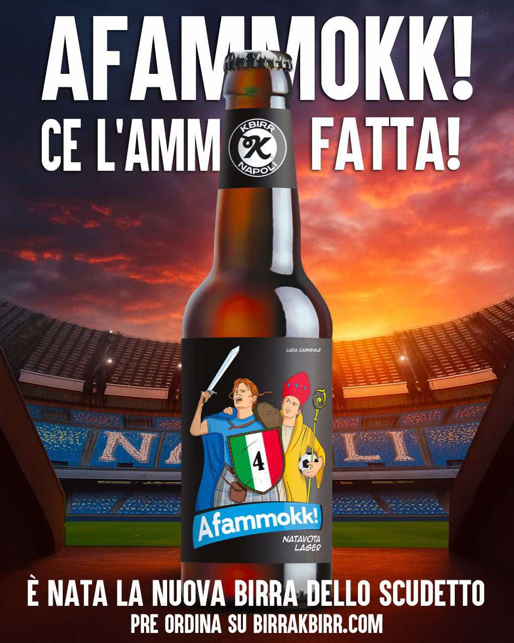 Il Napoli ha rivinto lo Scudetto ed anche il birrificio artigianale Kbirr l'ha rifatto. Se due anni fa il tricolore fu festeggiato con la birra limited edition chiamata "Assafà", dopo un'attesa lunga ben 33 anni, stavolta dopo un campionato così avvincente, incerto e tribolato fino all'ultimo istante è nata "Afammokk", da un' idea del patron Fabio Ditto e di Francesco Andoli (patron della ristobottega Januarius) con l'inconfondibile matita di Luca Carnevale. Un nome che è un grido di battaglia , un urlo liberatorio napoletanissimo per il Napoli "campione in Italia" per la quarta volta nella sua storia, battendo chi doveva stracciare il campionato..