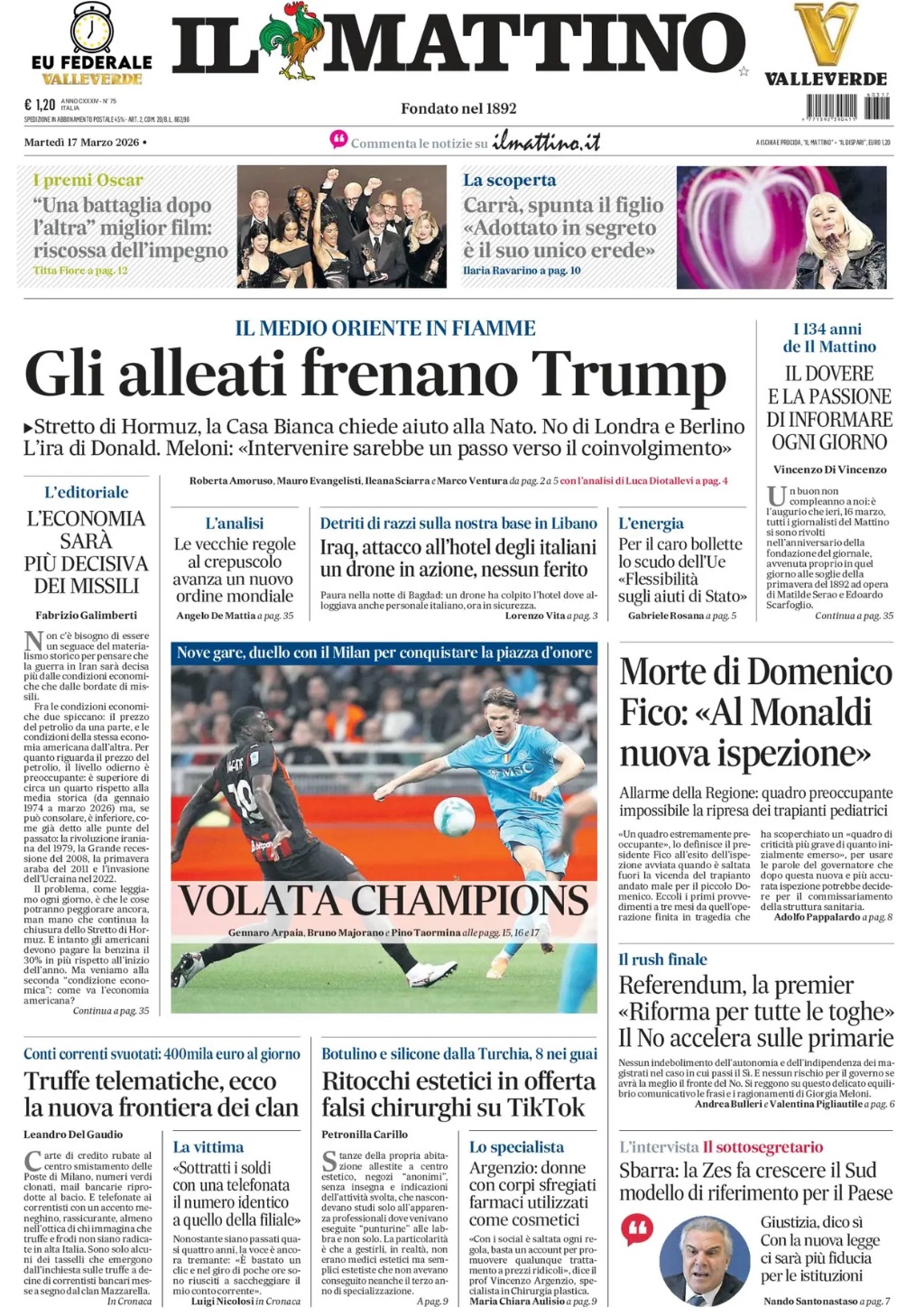 Il Mattino: "Volata Champions"