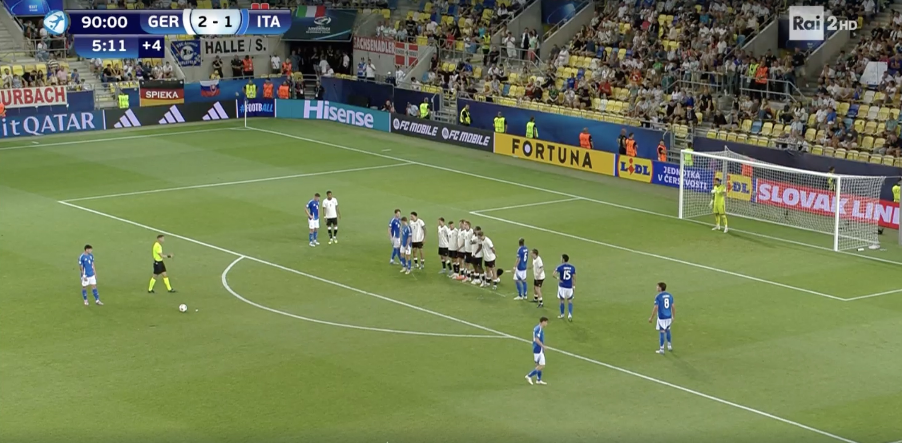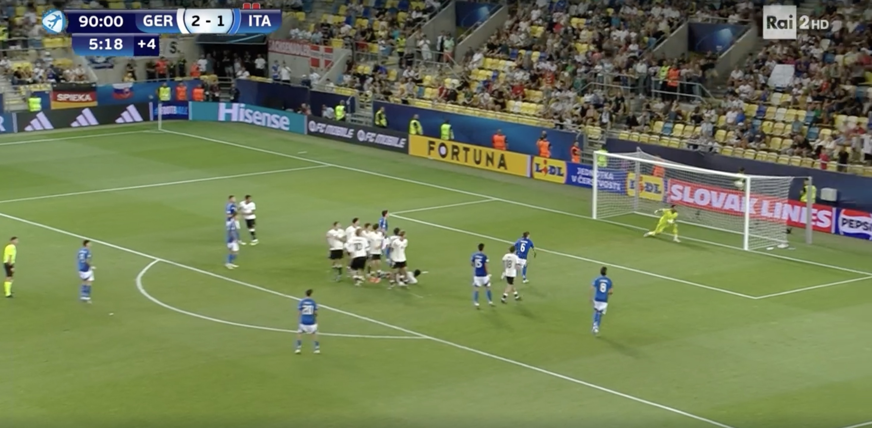 La magia di Ambrosino da punizione che tiene viva l'Italia U21: la fotosequenza