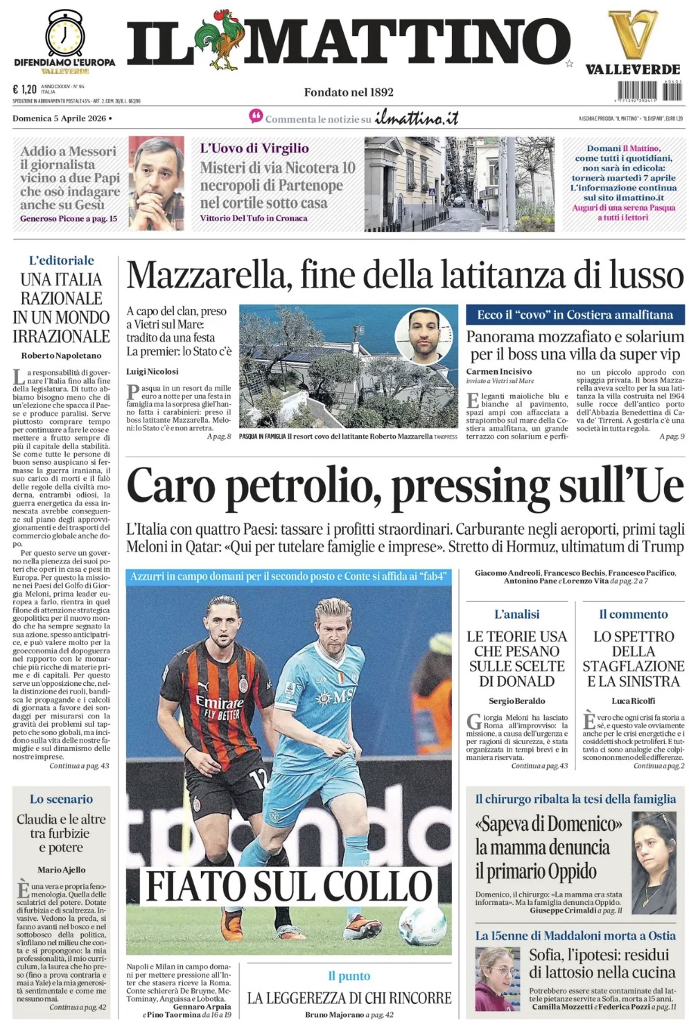 "Fiato sul collo", apre così in prima pagina Il Mattino nell'edizione odierna presentando la corsa scudetto: Napoli e Milan si sfideranno con l'obiettivo di mettere pressione all'Inter capolista. Il sommario: "Azzurri in campo domani per il secondo posto e Conte si affida ai fab4". Di seguito la prima pagina integrale.