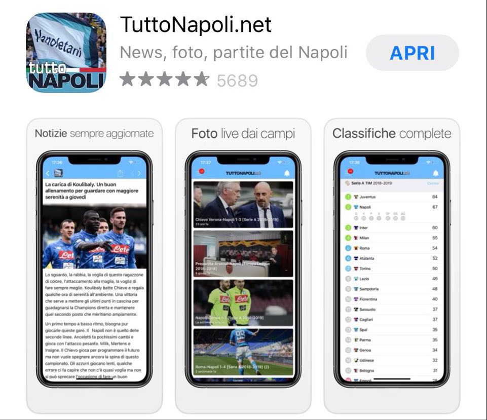 Sono oltre 700mila i tifosi azzurri che già hanno scaricato le nostre applicazioni per cellulari Apple, Android o Windows Phone, le più utilizzate per l'informazione mobile sul calcio Napoli. Le nostre app sono sempre più complete con l'inserimento anche dei Live della gare (testuali e fotografici), il tutto sempre rigorosamente gratis. Se non lo avete ancora fatto vi consigliamo di scaricarle, sotto i link agli store di riferimento: potete leggere i feedback e poi decidere se installarla.
