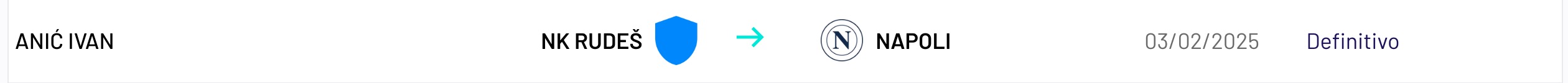 La sessione di mercato del Napoli sembrava terminata con l'acquisto di Noah Okafor, ma allo scadere gli azzurri sono riusciti a formalizzare un colpo per rinforzare la squadra Primavera. Il sito ufficiale della Serie A, infatti, comunica che il club partenopeo ha depositato il contratto del classe 2007 Ivan Anic, centrocampista di piede destro alto 187 centimetri, che arriva dal club croato NK Rudes.