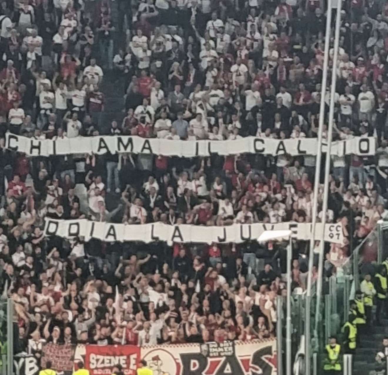 Striscione sfottò dei tifosi dello Stoccarda: "Chi ama il calcio odia la Juve"