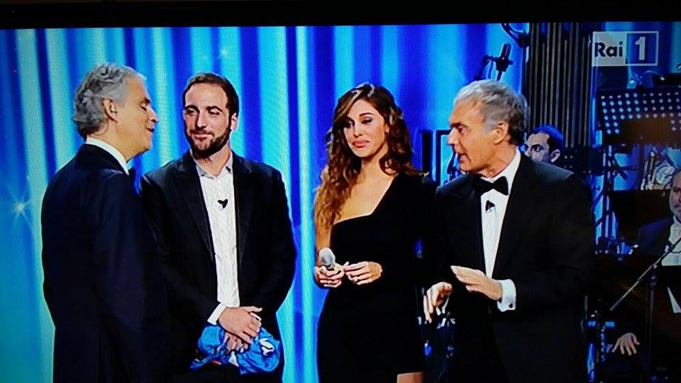Gonzalo Higuain è stato ospite nel corso della serata dedicata ad Andrea Bocelli su Rai 1 "Il mio cinema": il Pipita si è esibito in un veloce tango con la showgirl Belen Rodriguez, interropendolo dopo pochi secondi ("Non so ballare il tango!") ed ha in seguito consegnato una maglia azzurra al noto tenore, tifoso interista, che lo ha accolto con queste parole riferendosi alla grande prestazione dell'argentino con la Juventus: "Ti sono veramente grato per aver fatto in una sola partita un assist ed un gol, in quella giornata hai conquistato il mio cuore". Higuain ha poi risposto ad un quesito postogli dal presentatore Massimo Giletti: "Chi è più boss tra Sarri e De Laurentiis? Sicuramente il secondo, ma il mister mi ha fatto molto felice quest'anno".