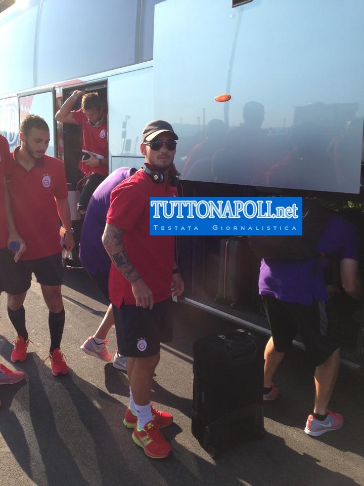 Tra lo stupore dei tanti curiosi che si sono ritrovati improvvisamente di fronte campioni del calibro di Drogba, Felipe Melo, Muslera e Snejider, il Galatasaray è appena arrivato all'Hotel Vesuvio sul lungomare napoletano. Il club turco sfiderà lunedì sera il Napoli in amichevole, serata storica per il club azzurro visto che sarà l'occasione di incontrare per la prima volta al San Paolo il nuovo tecnico Benitez ed i nuovi acquisti tra i quali spicca la stella Gonzalo Higuain, il cui ingaggio è stato ufficializzato oggi.