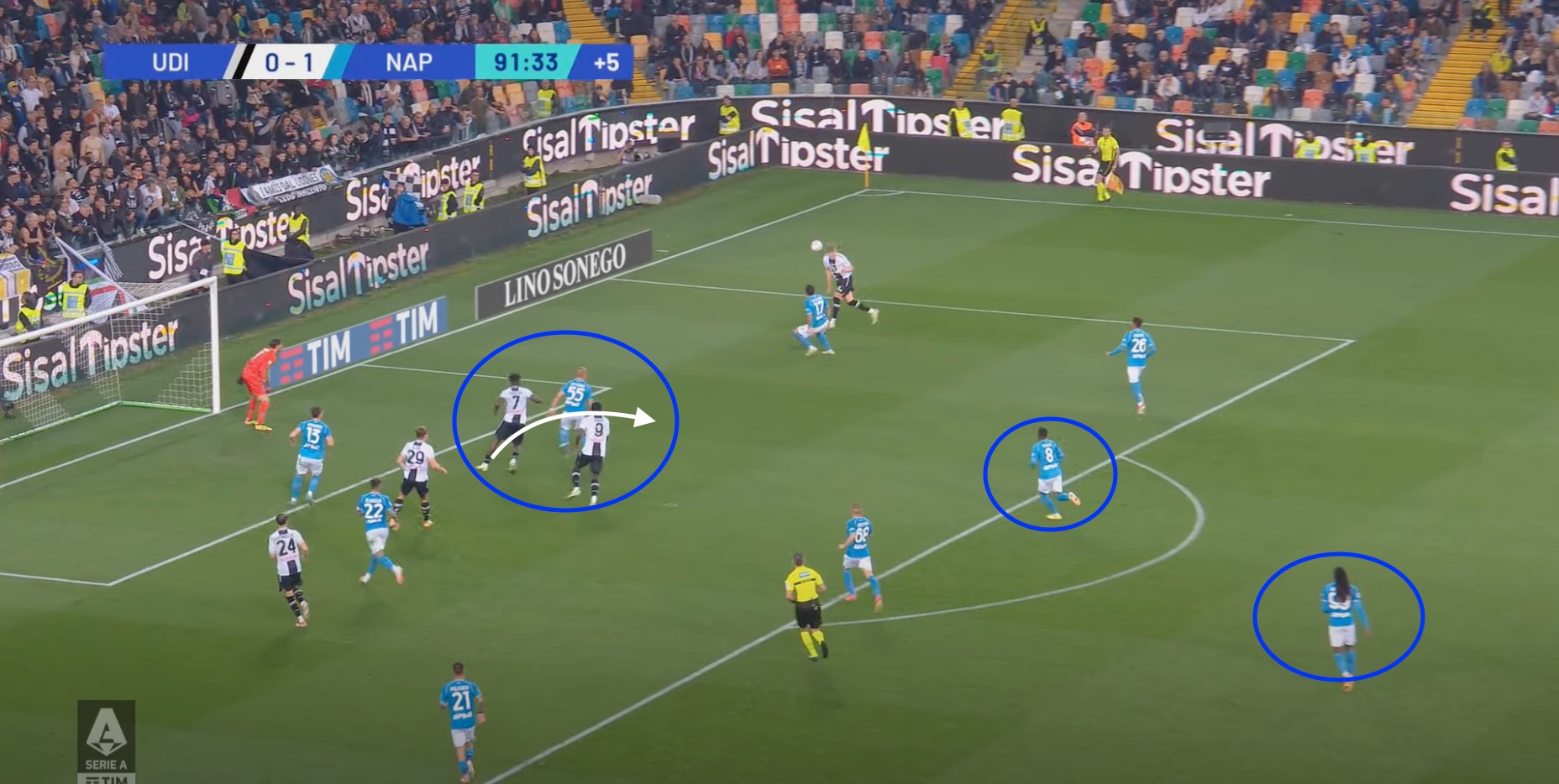 In vacanza sul gol dell'Udinese: Lobotka 'richiama' Anguissa fermo, ormai a tutti gli avversari basta un cross