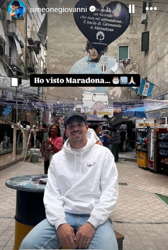 Continuano le celebrazioni per quello che sarebbe stato il giorno del 64esimo compleanno di Diego Armando Maradona. Per l'occasione anche l'attaccante argentino del Napoli Giovanni Simeone ha voluto ricordare il Pibe de Oro pubblicando in una 'storia' su Instagram una foto che lo ritrae in in visita al Largo Maradona e scrivendo: "Ho visto Maradona".