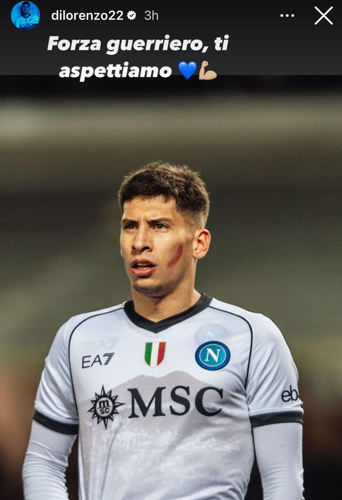 Capitan Di Lorenzo incoraggia Olivera: "Forza guerriero, ti aspettiamo"