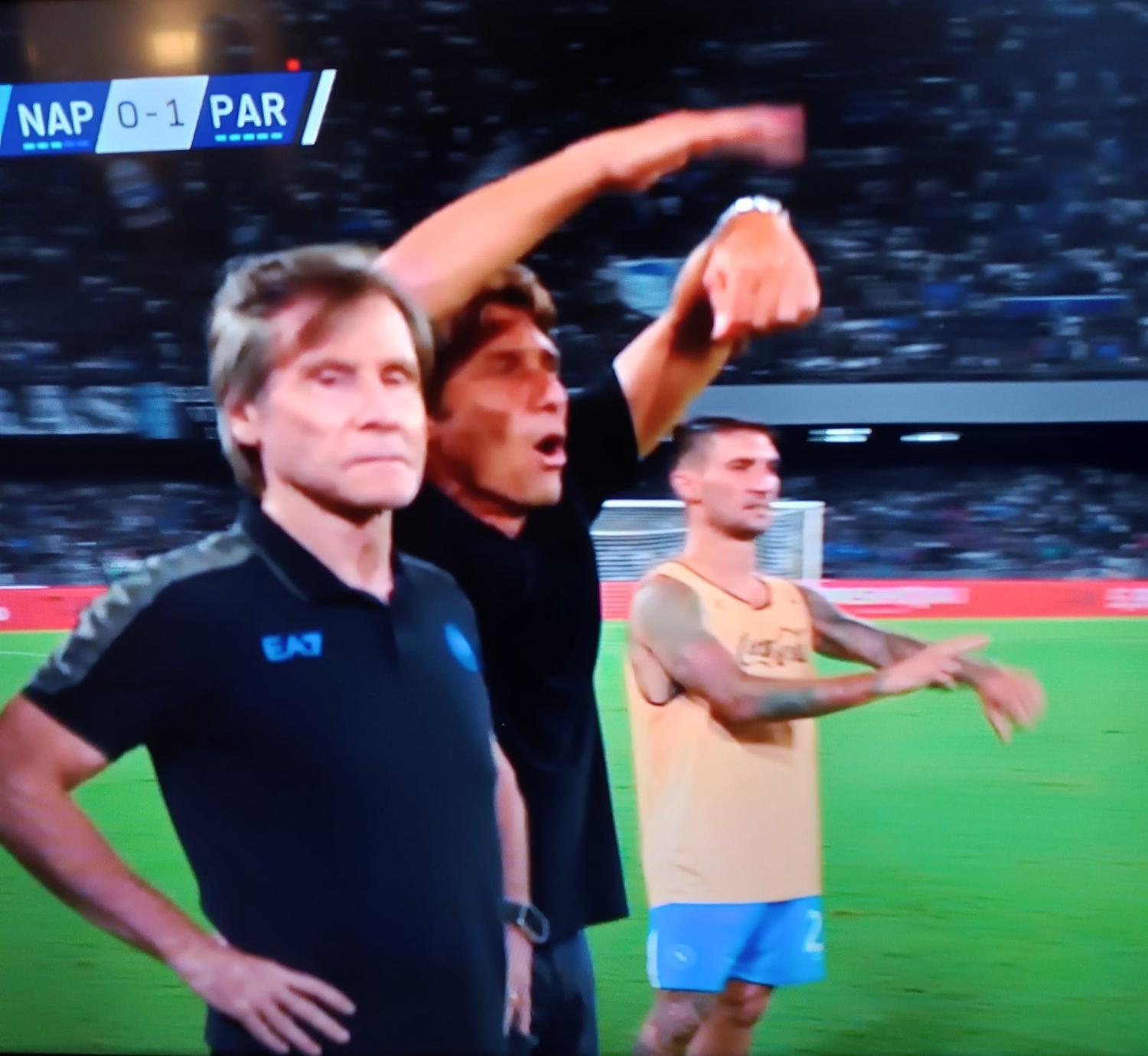 E' diventata subito virale sui social l'immagine di Antonio Conte che fa la "Mazzarri move". Durante Napoli-Parma sul parziale di 0-1 il portiere Suzuki è stato espulso e gli emiliani avendo terminato i cambi hanno dovuto mandare Del Prato tra i pali. Così durante questo movimento si è perso diverso tempo, a quel punto Antonio Conte più volte furioso ha indicato l'orologio per indicare i minuti da recuperare (gesto che fa spessissimo Walter Mazzarri e che lo contraddistingue), e l'immagine non è passata inosservata.