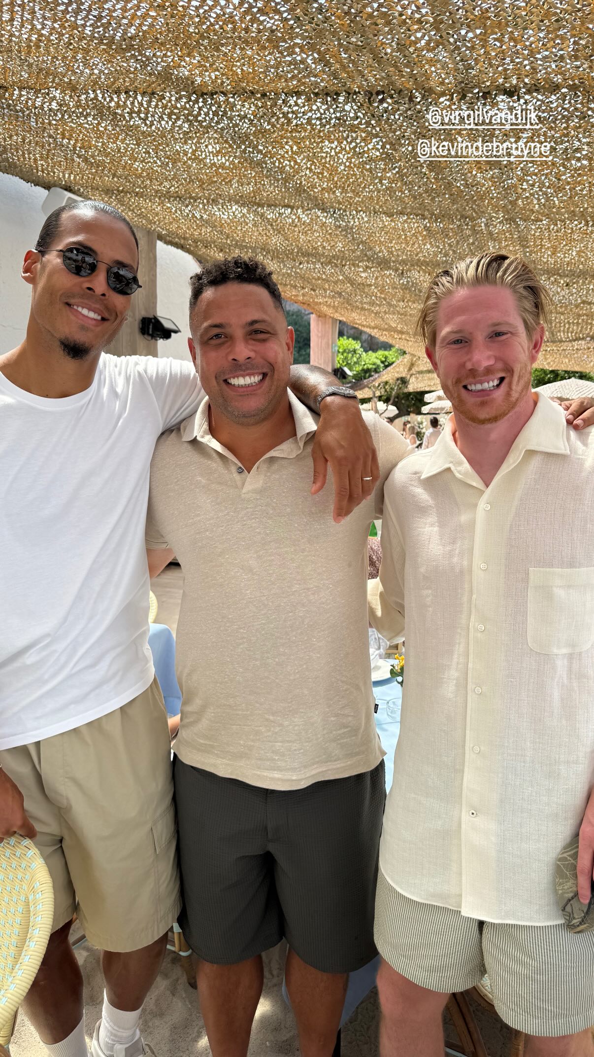 Dopo essere stato ufficializzato come nuovo acquisto del Napoli, Kevin De Bruyne si sta godendo il suo periodo di relax prima di dover partire per il ritiro di Dimaro. Il centrocampista belga in questo momento si trova in Costa Azzurra e ha pubblicato una foto sul suo profilo Instagram insieme a due grandissimi calciatori: Ronaldo "Il Fenomeno" e Virgil Van Dijk... Uno scatto che ha fatto brillare gli occhi ai tifosi. Di seguito la foto.