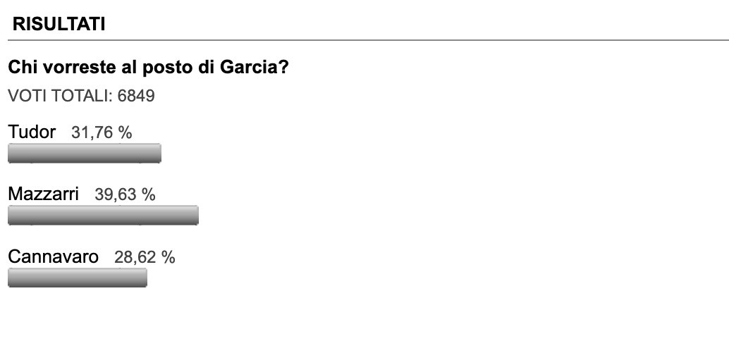 Su un totale di quasi settemila votanti, il 40% ha preferito Walter Mazzarri e Igor Tudor e Fabio Cannavaro, i tre nomi che hanno costituito la lista di De Laurentiis per il post-Garcia già dall'immediato dopo-partita di Napoli-Empoli. L'allenatore di San Vincenzo, evidentemente per quanto fatto in azzurro ormai dieci anni fa, ha vinto il nostro sondaggio: poco più del 31% i voti per Tudor, quasi il 29% per Cannavaro.