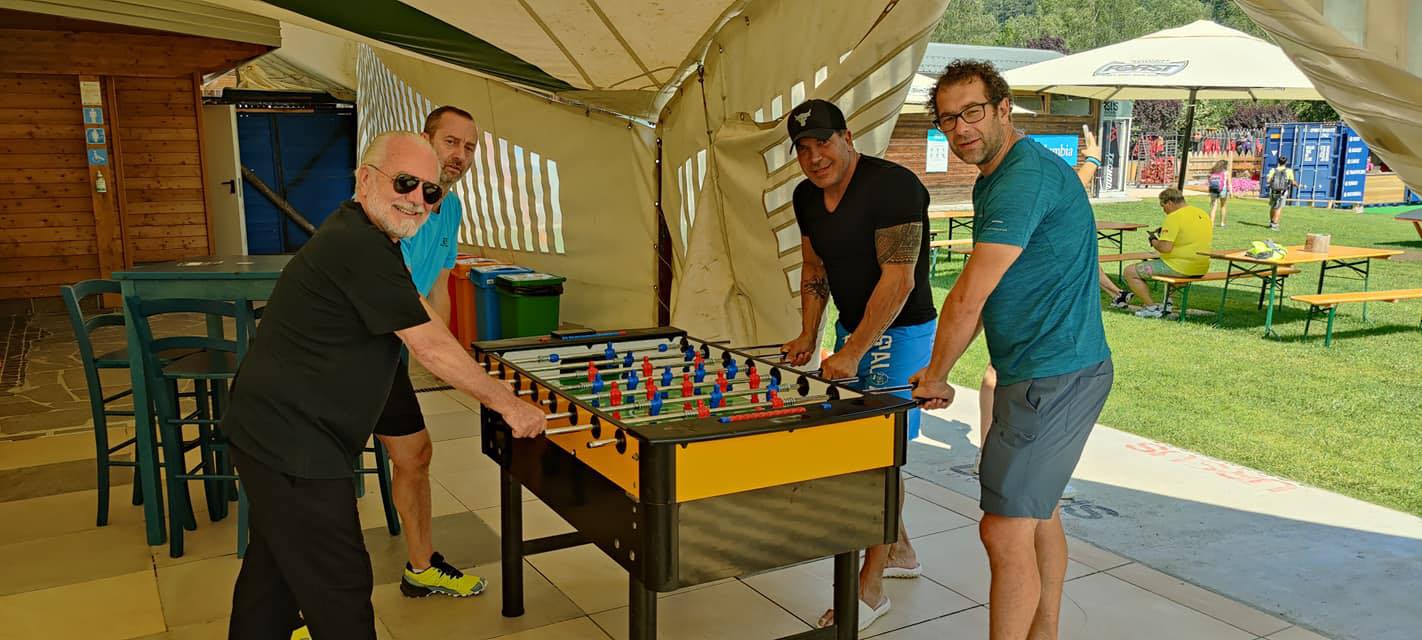 FOTO - ADL, sfida a calciobalilla col presidente della Spal: lo scatto da Dimaro