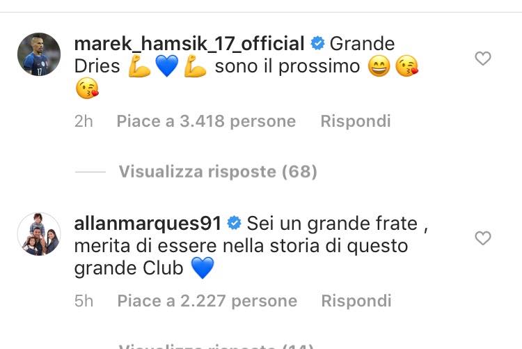 FOTO - Allan esalta Mertens: "Sei un grande, meriti di essere nella storia di questo grande club"