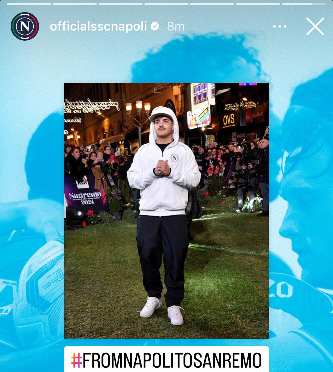FOTO - Geolier in tuta SSCNapoli a Sanremo: il club lo reposta e lo sostiene con un hashtag