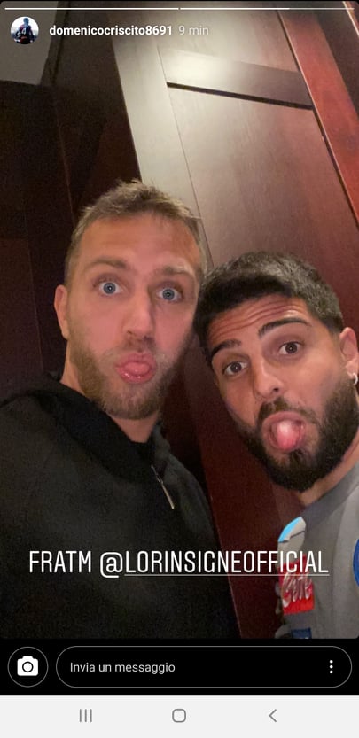 A poche ore dal posticipo della ventiduesima giornata di campionato tra Sampdoria e Napoli, Lorenzo Insigne si riunisce con il genoano e napoletano Mimmo Criscito. Entrambi capitani delle rispettive squadre, i due calciatori sono amici e in questi minuti che precedono il match si sono incontrati nel quartier generale azzurro in quel di Genova. Il difensore rossoblù ha postato uno scatto su Instagram, chiamando "fratm" l'attaccante di Frattamaggiore.