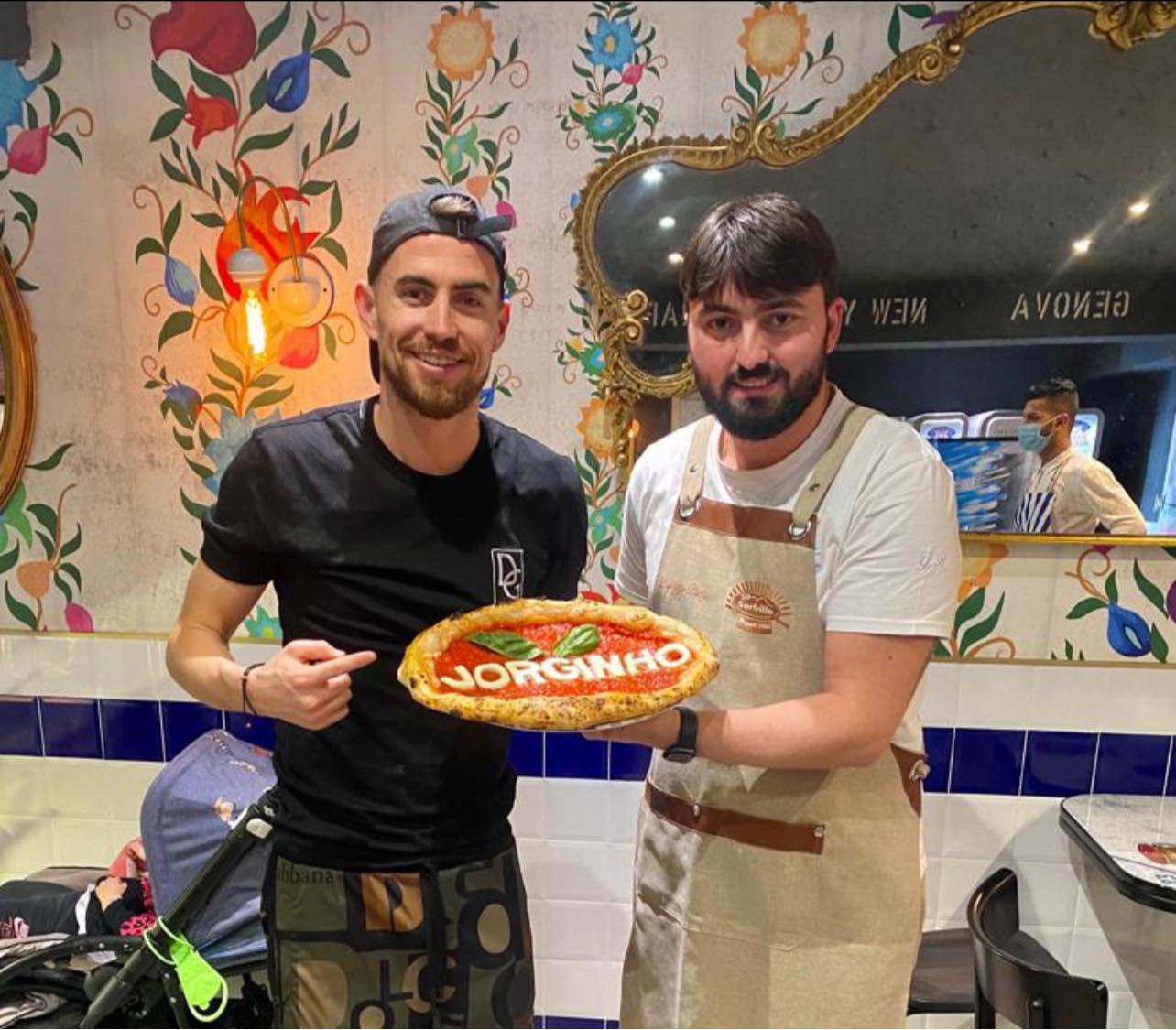 Alcuni big della Nazionale, come il napoletano Insigne, non sono stati convocati dal ct Mancini per l'inutile gara contro la Turchia. Tra questi l'ex Napoli Jorginho ha profittato per concedersi qualche giorno di relax nel capoluogo campano. Per il centrocampista del Chelsea quale miglior rimedio di una buona pizza per consolarsi dall'eliminazione ai Mondiali? Ed infatti l'italo-brasiliano questa sera ha deciso di gustarsi una pizza napoletana recandosi da Gino Sorbillo, che ha personalizzato una Margherita con il nome del calciatore. Di seguito la foto postata sui social dal noto pizzaiolo.