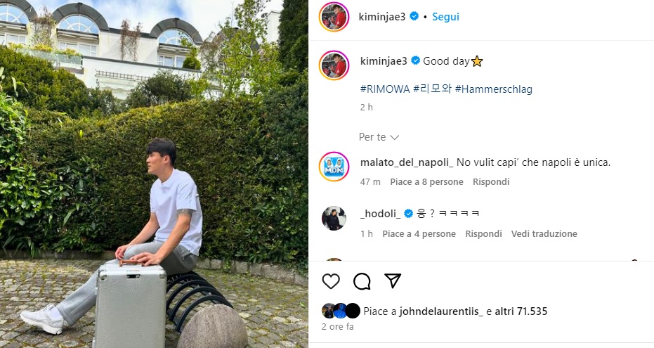I tifosi del Napoli sognano un ritorno di Kim Minjae in azzurro. L'occasione per comunicare al coreano il proprio desiderio è un post Instagram dove il difensore, che non sta vivendo una felice esperienza al Bayern Monaco, appare con una valigia. L'account social di Kim è stato invaso da un’ondata di messaggi tutti con lo stesso contenuto: “Torna a Napoli!”.