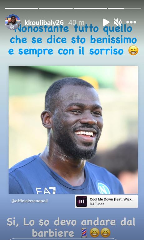 Postando una foto del canale social del Napoli, Kalidou Koulibaly spegne le voci relative a un suo incidente in città di questo pomeriggio. Nulla di grave, non ci sono state conseguenze: "Nonostante quello che si dice sto benissimo e sempre con il sorriso. E lo so, devo andare dal barbiere" le sue parole con riferimento finale al suo look. Ecco il post: