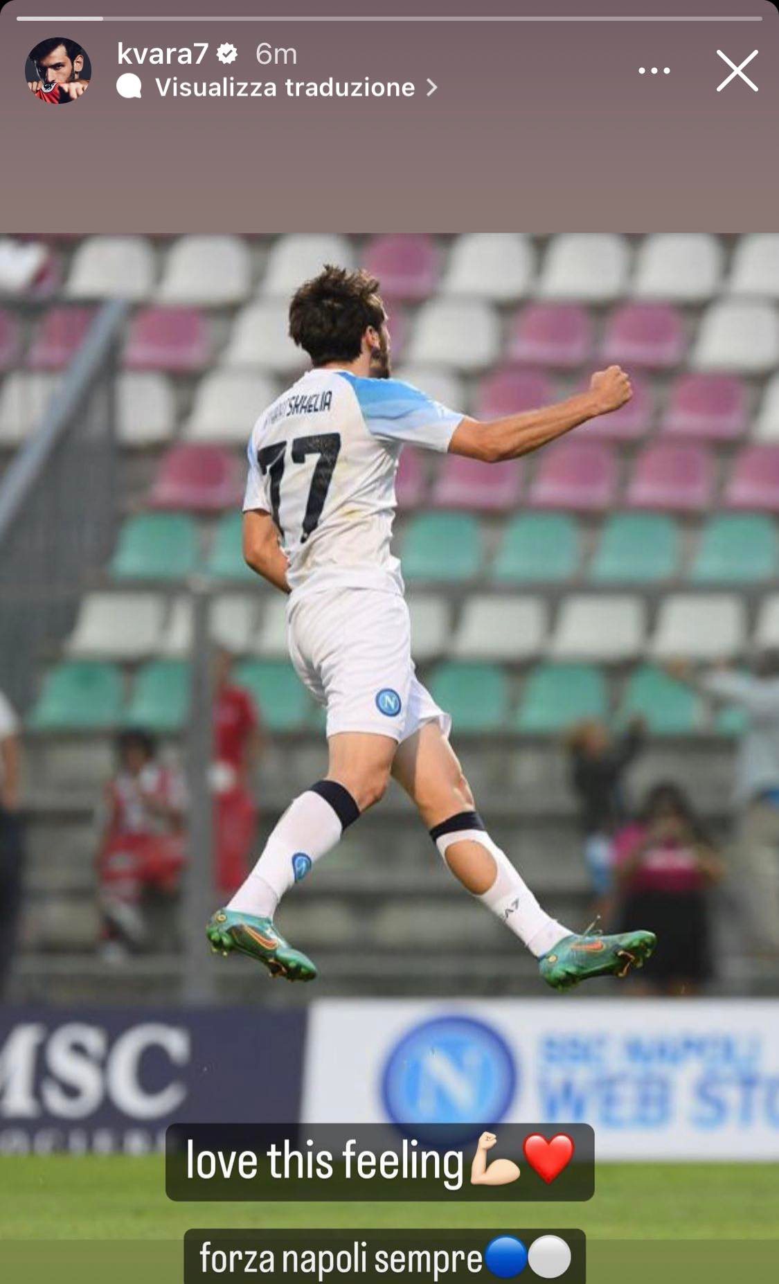Khicha Kvaratskhelia, autore del terzo gol del Napoli nell'amichevole contro il Girona, ha commentato il match attraverso il suo account Instagram. L'esterno azzurro, ancora tra i migliori nel terzo test amichevole del Napoli a Castel di Sangro, ha scritto: "Amo queste sensazioni".