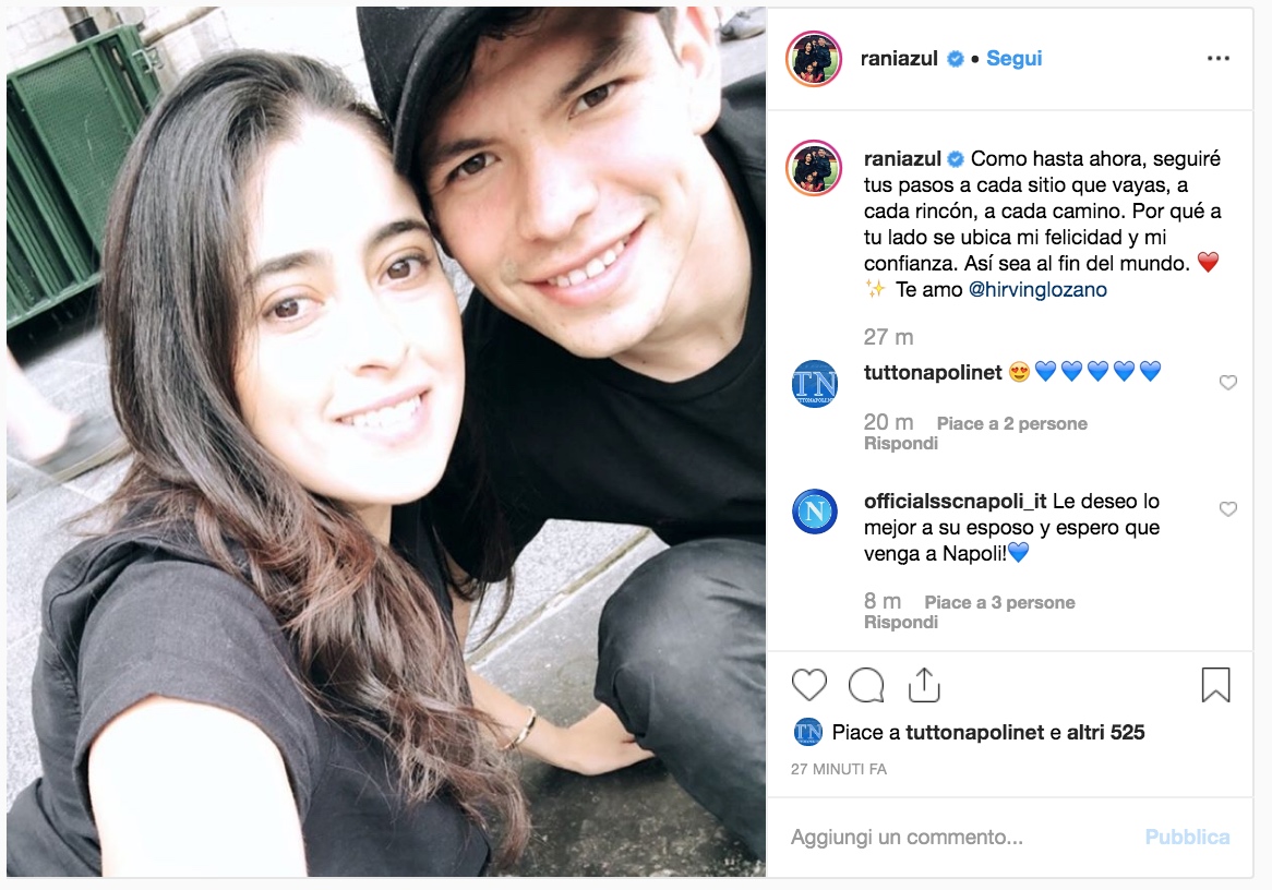 Ana Opp, moglie di Hirving Lozano, ha voluto ulteriormente ribadire la sua estraneità alle scelte professionali del marito, dopo le voci di un presunto diniego al trasferimento al Napoli. Su instagram infatti ha scritto un post che sembra fugare ogni dubbio sull'argomento: "Seguirò i tuoi passi in ogni posto in cui vai, in ogni angolo, in ogni strada. Perché la mia felicità e la mia fiducia si trovano al tuo fianco. Quindi sarà così fino alla fine del mondo". Palese, dunque, la volontà di ribadire che asseconderà ogni scelta professionale del marito, che pare essere sempre più vicino a vestire l'azzurro.