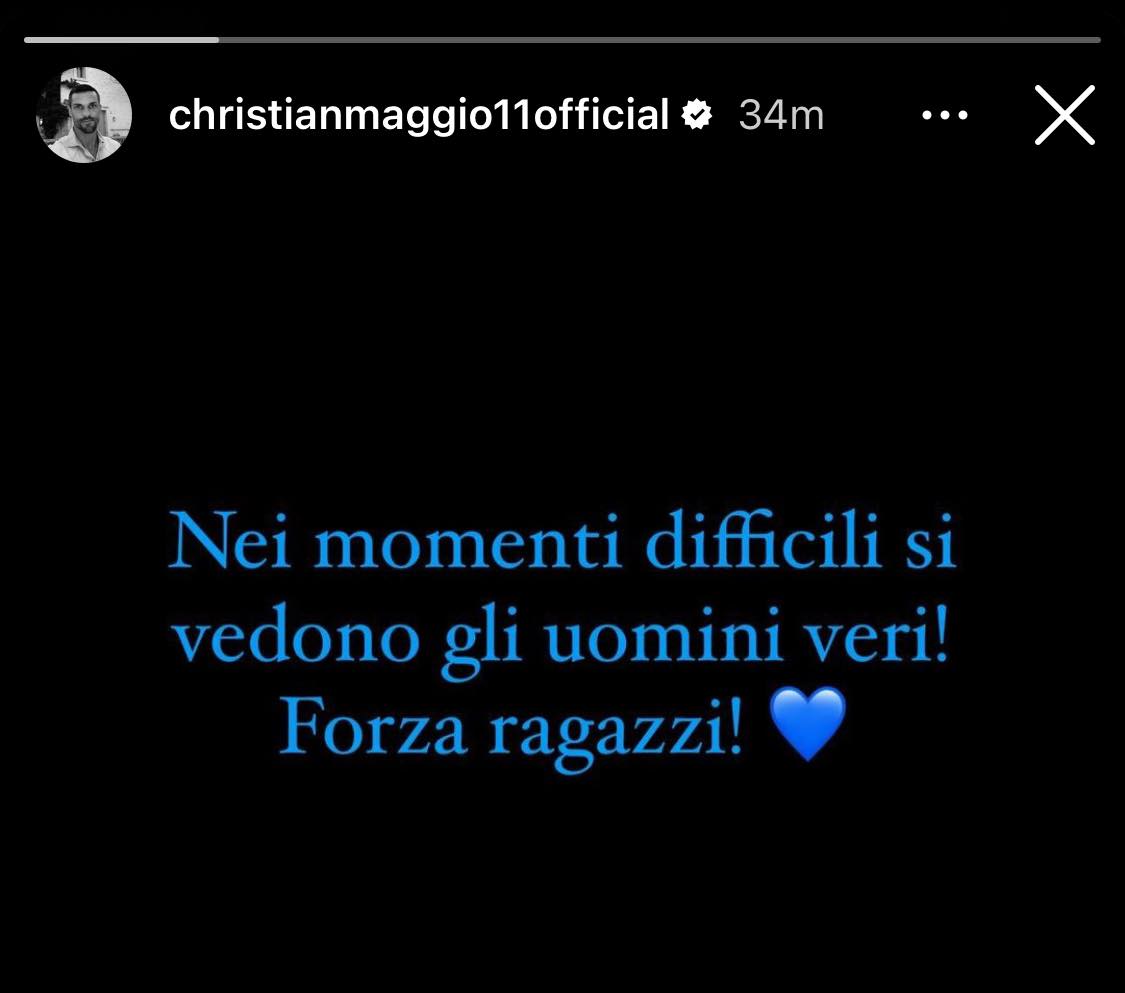 Christian Maggio è stato capitano del Napoli, ha trascorso ben 10 stagioni in maglia azzurra collezionando oltre 300 presenze. Anche dopo l'addio al club, si è sempre mostrato interessato e affezionato alla squadra partenopea. Oggi, tramite una story sul suo profilo Instagram ha scritto: "Nei momenti difficili si vedono gli uomini veri! Forza ragazzi!".