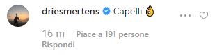 Buona prova, quella di ieri, per Elif Elmas contro il Marsiglia. Il neo acquisto del Napoli ha convinto nel corso del match contro i francesi, di fatto raccogliendo diversi consensi. Il giocatore macedone sembra a buon punto anche nel suo percorso di integrazione con la squadra: sotto ad una foto pubblicata dallo stesso Elmas su Instagram, che lo ritrae durante il match contro il Marsiglia con una capigliatura non troppo ordinato, è comparso puntuale ed ironico il commento di Dries Mertens, diretto proprio ai capelli del compagno di squadra.