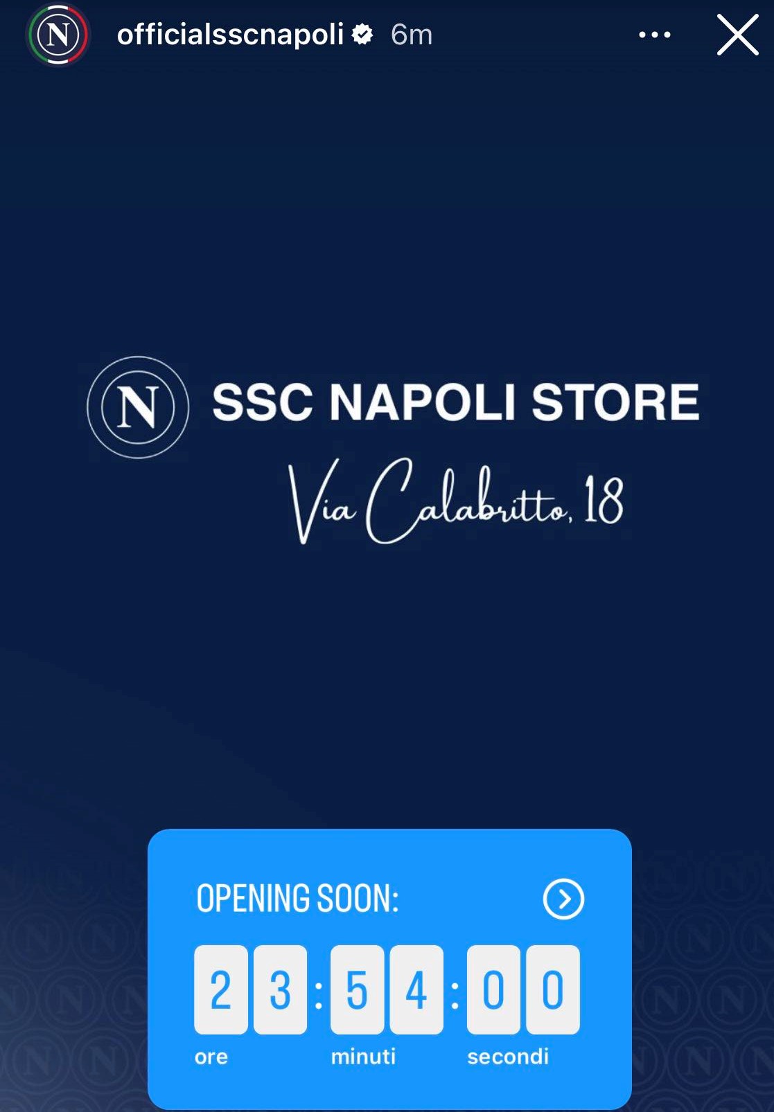 Come annunciato ieri dal presidente del Aurelio De Laurentiis, il Napoli domani aprirà un nuovo store ufficiale. Sui propri account social il club azzurro ha fatto partire il countdown che porterà all'apertura nel negozio nel centro di Napoli a Via Calabritto. Orario di apertura fissato per le 19.26, stesse cifre dell'anno di fondazione della SSCNapoli.