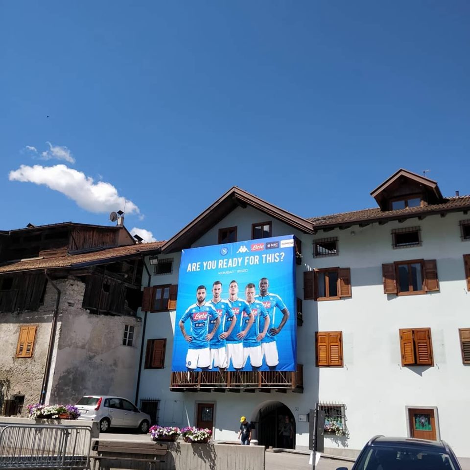 Tutto pronto per l'inizio del ritiro estivo del Napoli che sarà in Trentino dal 6 al 26 luglio. Sui social spunta il tabellone che accoglierà gli azzurri, per le strade di Dimaro Folgarida la nuova maglia del Napoli con Insigne, Fabian, Milik, Zielinski e Koulibaly modelli. Ecco la foto: