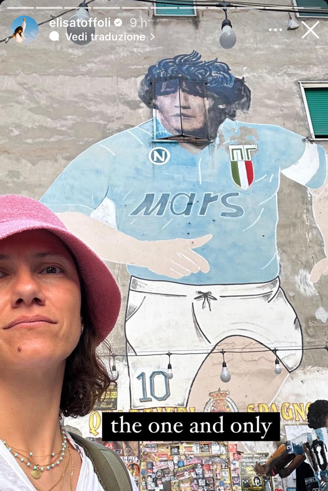 Elisa è a Napoli. La cantante sta trascorrendo le sue vacanze nel capoluogo partenopeo e sta visitando le bellezze della città ma anche della provincia. Nelle ultime ore Elisa si è recata anche ai Quartieri Spagnoli al murales di Diego Armando Maradona. La cantante ha pubblicato su Instagram un selfie con la seguente didascalia “the one and only”. Di seguito lo scatto.