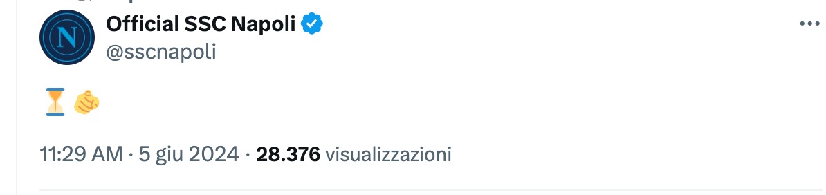 Scorre la clessidra. E' l'immagine pubblicata dal Napoli sui propri canali twitter/X in vista dell'imminente annuncio di Antonio Conte. Il tecnico infatti ha firmato il contratto che lo legherà al club partenopeo ed ora si attende solo il tweet del presidente De Laurentiis
