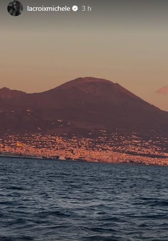 Michele Lacroix, compagna del bega, ha infatti condiviso su Instagram uno scatto suggestivo del Vesuvio con il mare in primo piano, foto scattata mentre si recava insieme alla consorte dello scozzese, Cam Reading, a Capri. Di seguito lo scatto.
