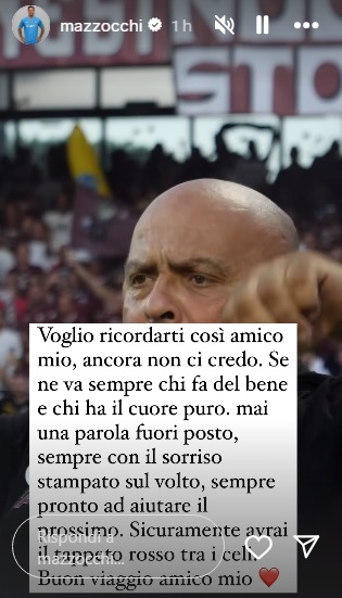 Tra i messaggi di cordoglio anche quello su Instagram dell'esterno del Napoli ed ex granata Pasquale Mazzocchi: "Voglio ricordarti così amico mio, ancora non ci credo. Se ne va sempre chi fa del bene e chi ha il cuore puro. Mai una parola fuori posto, sempre con il sorriso stampato sul volto, sempre pronto ad aiutare il prossimo. Sicuramente avrai il tappeto rosso tra i cieli. Buon viaggio amico mio".