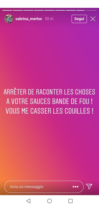 "Smettetela di raccontare le cose come volete, banda di pazzi! Mi avete rotto le p...". Si sfoga così su Instagram Sabrina Merlos, moglie di Jordan Veretout, che è stata presa di mira dai tifosi del Napoli per presunte dichiarazioni riportate da altre testate, secondo cui la donna aveva detto: "Mi piace Napoli ma ho paura per i bambini. Mi sento più sicura quando vengo e sono con Jordan e il suo agente. Jordan a Napoli guadagnerebbe il triplo, ma è meglio guadagnare meno che rischiare di essere uccisi. Queste sono cose che ho sentito". Sabrina Merlos, dunque, nega di aver pronunciato queste parole.