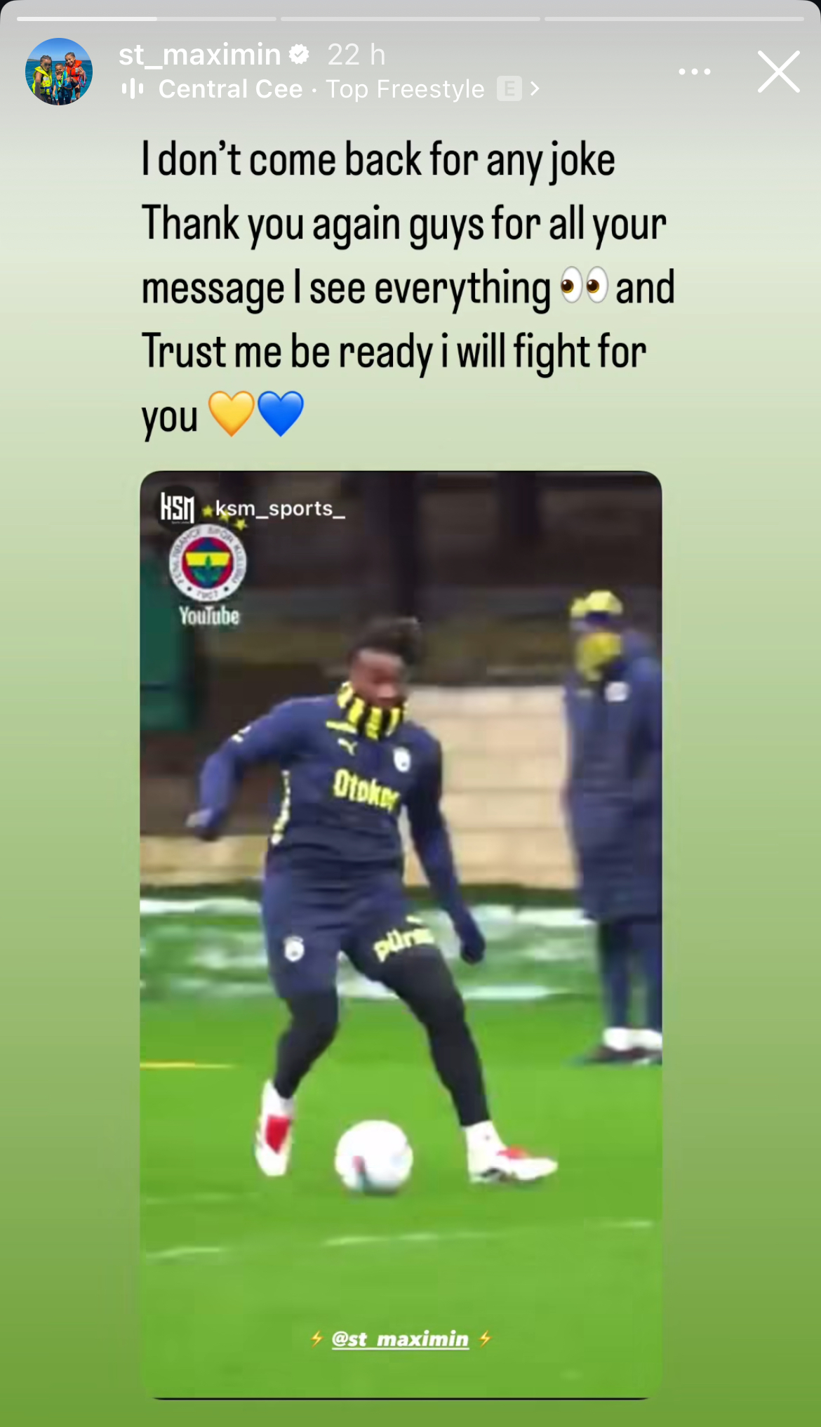 Saint-Maximin scrive ai tifosi del Fenerbahce: “Sono pronto, lotterò per voi!”