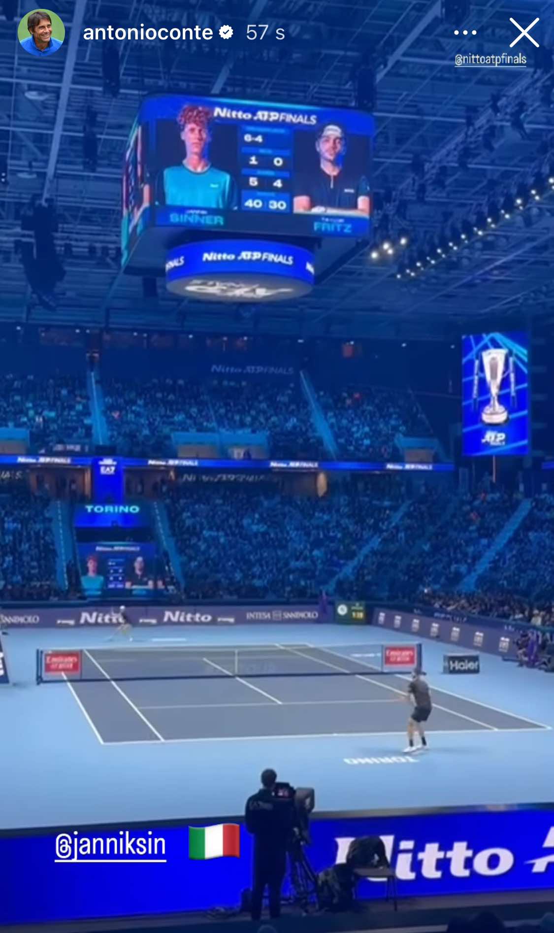Jannik Sinner batte in due set (6-4 6-4) Taylor Fritz per la seconda partita del girone “Nastase” delle ATP Finals di Torino. A seguire il match vinto dal tennista italiano e numero uno al mondo anche Antonio Conte.