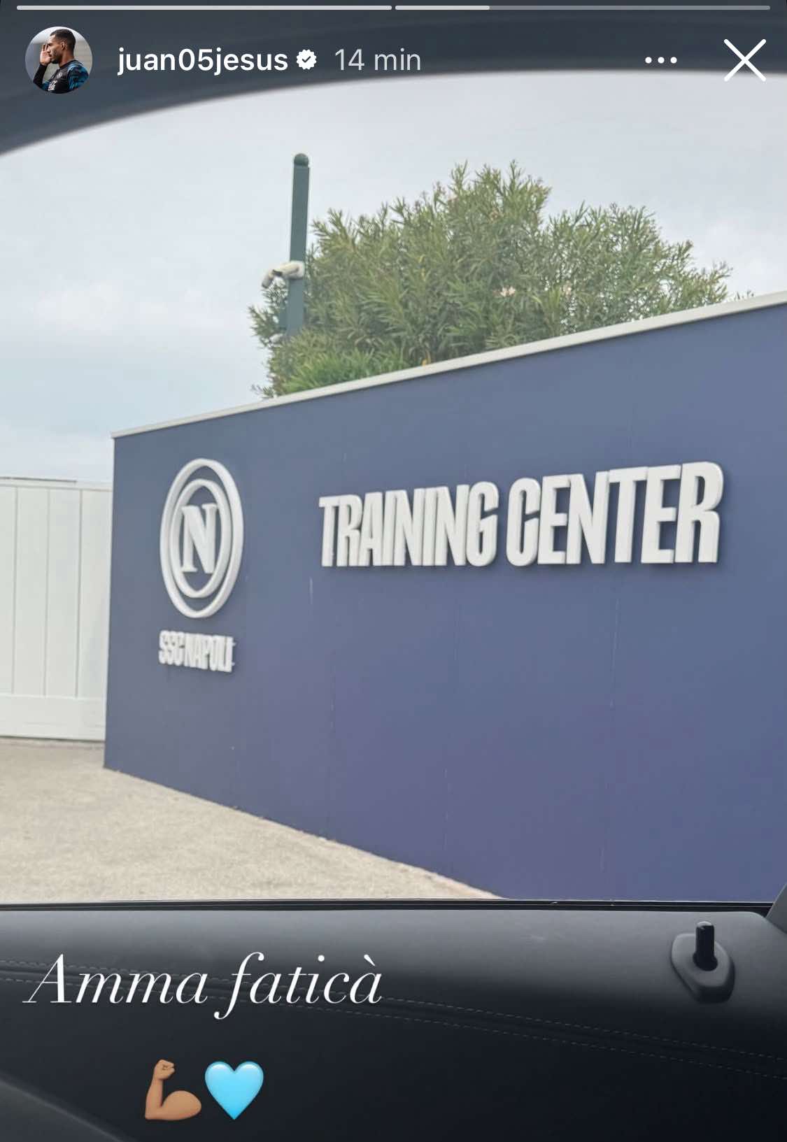 Il Napoli oggi non si allena, all'indomani del successo di Lecce. Ma non vale per tutti. Come dimostrato da uno scatto pubblicato attraverso le sue Instagram Stories, Juan Jesus è a Castel Volturno per proseguire la sua tabella di recupero.
