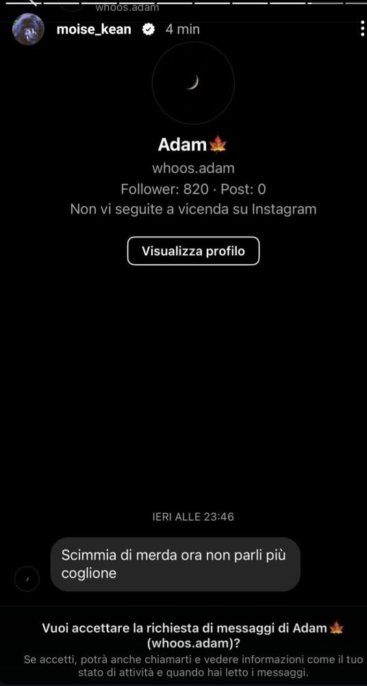 Dopo il successo per 3-0 della sfida di andata recuperata al Franchi giovedì scorso, la Fiorentina questa sera ha giocato di nuovo contro l'Inter, questa volta a San Siro. Il match è finito 2-1 in favore dei nerazzurri. Nel post partita l'attaccante della Fiorentina Moise Kean, che nel pomeriggio aveva postato una storia Instagram, è stato bombardato di offese razziste, sempre sui social, da alcuni tifosi nerazzurri. La sua reazione, sempre sotto forma di storia Instagram, è stata una faccina che vomita con la scritta: "ancora, nel 2025". Di seguito le foto delle offese razziste rivolte a Moise Kean e la sua risposta:
