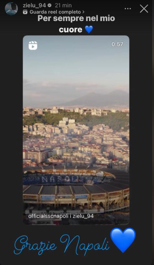 Intanto il club azzurro oggi gli ha dedicato una clip per salutarlo, con le sue giocate più belle. L'ex Empoli e Udinese ha risposto con una Instagram Story, ripostando il video pubblicato dal Napoli e scrivendo quanto segue: "Per sempre nel mio cuore. Grazie Napoli!".