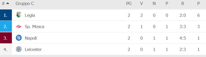 CLASSIFICA - Legia a sorpresa a punteggio pieno, Napoli e Leicester con 1 punto