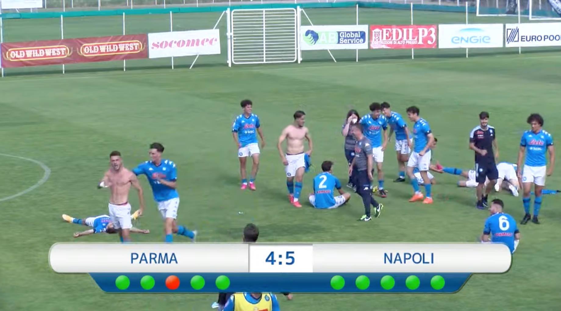 Il Napoli Primavera batte 6-5 ai calci di rigori il Parma nella semifinale play-off di Primavera 2 e conquista la promozione prima ancora della finale, visto l'allargamento del campionato Primavera 1 a 18 squadre. Grande l'impresa degli azzurrini che portano i padroni di casa ai rigori dopo l'1-1 dopo i tempi regolamentari e supplementari (dove dominano colpendo anche una traversa al 117'). Ducali in vantaggio al 18' con Napoletano, pareggio azzurro che arriva a 6' dal termine con un gol stupendo del numero 10 Labriola. Decisico poi ai rigori Idasiak che para un rigore mentre Cataldi chiude i giochi addirittura col cucchiacio. Grande esultanza e festa in campo per i ragazzi di Cascione. Di seguito le immagini.