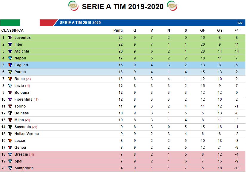 CLASSIFICA - Il Napoli non approfitta, gli azzurri restano a -6 dalla vetta