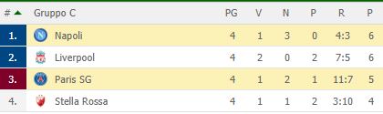 E' finita 1-1 tra Napoli e Psg, un pareggio che ha consegnato agli azzurri il punto utile per ritrovare il primo posto del girone C in compagnia del Liverpool. Ora, però, è bagarre per la qualificazione vista la vittoria della Stella Rossa che ha di fatto creato scompiglio e riportato in corsa gli stessi serbi a 4 punti.