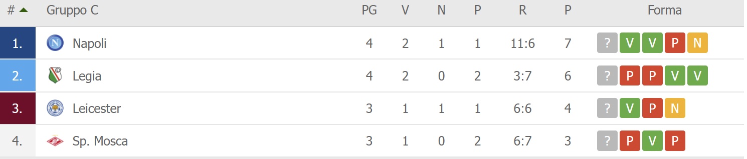 CLASSIFICA - Il Napoli scavalca il Legia: azzurri per ora primi da soli