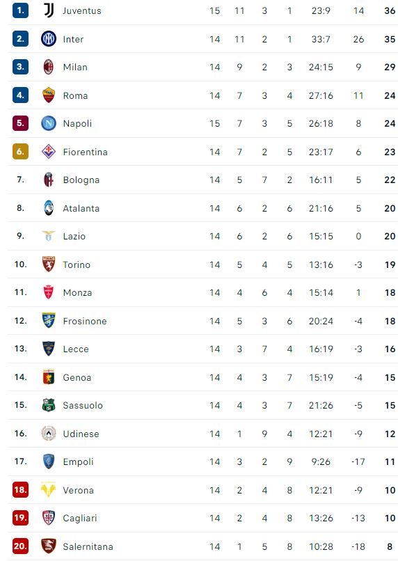 CLASSIFICA - Juve a +12 e ora il Napoli rischia di diventare sesto!