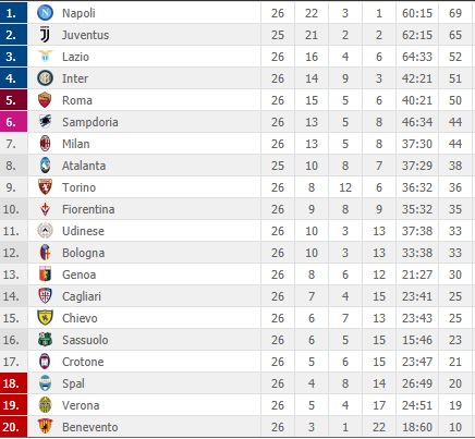 CLASSIFICA - Juve fermata dalla neve, il Napoli ne approfitta: gli azzurri volano a +4