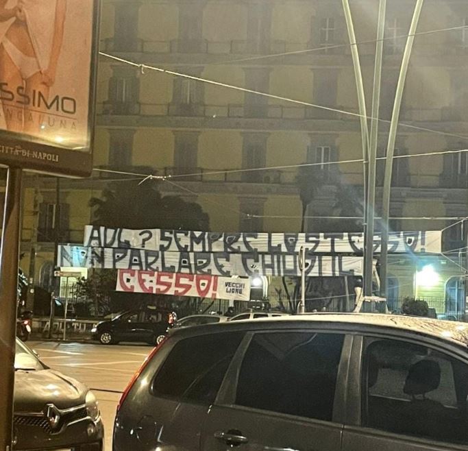 Nella notte è apparso un altro striscione di contestazione in città, più precisamente a Piazza Sannazzaro, nei confronti di Aurelio De Laurentiis. "ADL? Sempre lo stesso. Non parlare, chiudi il cesso", quanto scritto da una frangia del tifo organizzato. In particolar modo lo striscione viene firmato dal gruppo 'Vecchi Lions'. Di seguito lo scatto.