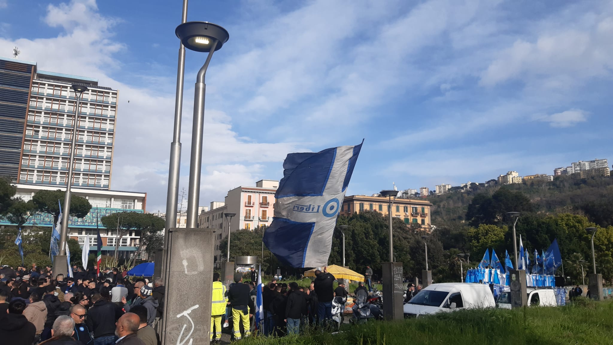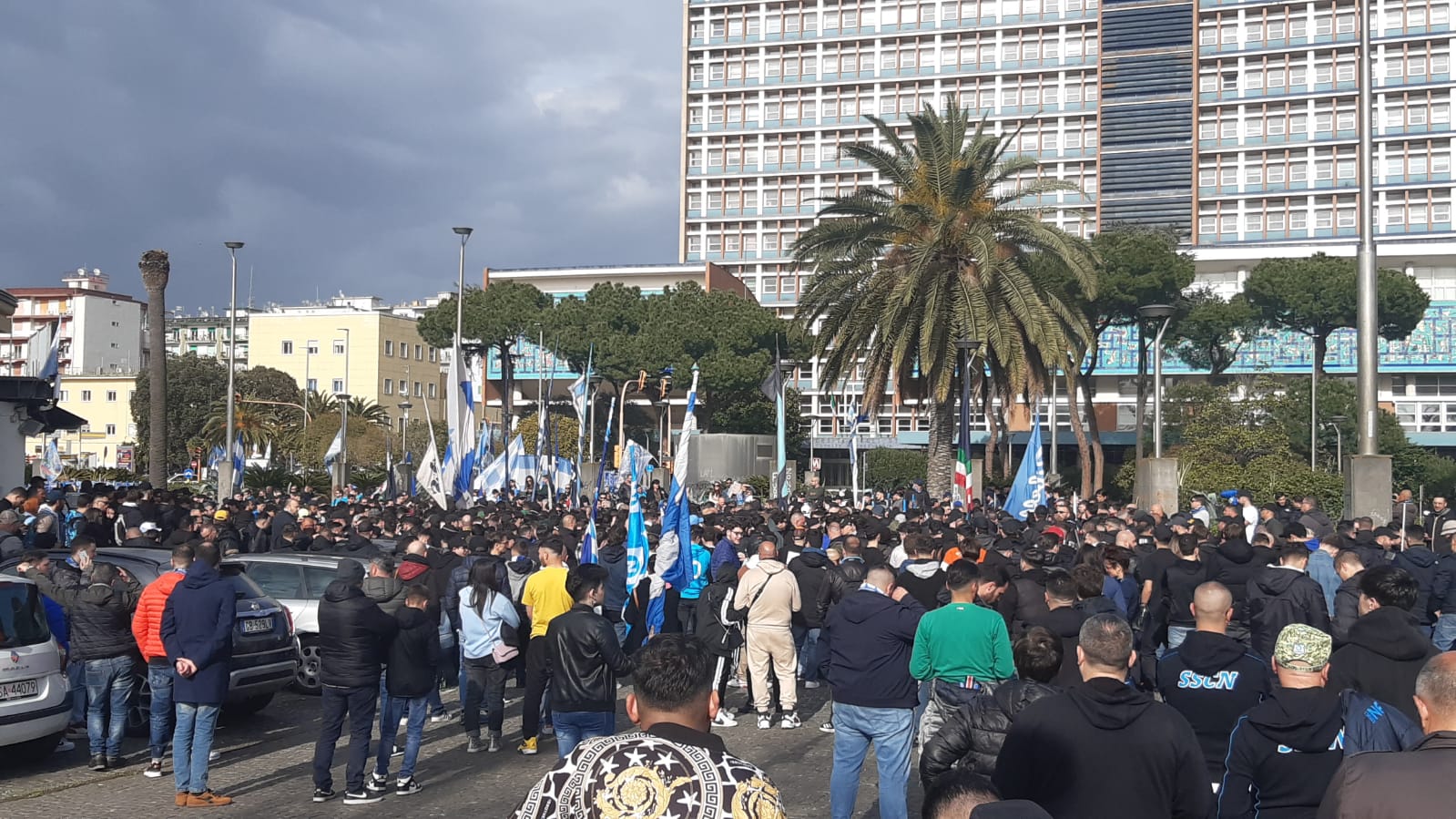 E' in corso la protesta degli ultras del Napoli a Piazzale Tecchio. I gruppi organizzati delle curve si sono ritrovati all'esterno della stazione della Cumana e della facoltà d'ingegneria con bandiere, stendardi e fumogeni per ricreare l’atmosfera che viene negata all’interno dello stadio Maradona per il divieto dell’ingresso dei vessilli nell'impianto di Fuorigrotta. La protesta continuerà allo stadio per Napoli-Milan, dove le curve resteranno in silenzio.