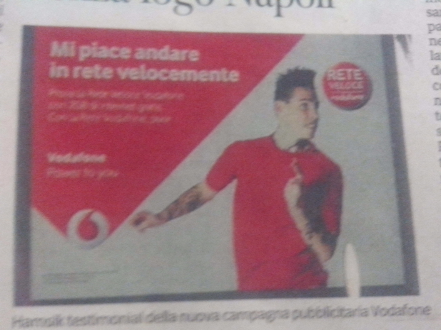 La Vodafone ha scelto Marek Hamsik come testimonial per la sua nuova campagna pubblicitaria. Nella pubblicità nessun riferimento al Napoli, un cambio di pagina che ha spiegato il Corriere del Mezzogiorno nella sua edizione odierna: "Che Hamsik e probabilmente altri calciatori azzurri siano liberi di negoziare la propria immagine con qualsiasi azienda, è un concetto che stride fortemente con quella che è stata finora la politica del club. E' più verosimile invece immaginare che il Napoli abbia deciso di sviluppare in maniera più ampia e dunque anche più vantaggiosa l immagine dei propri tesserati. La svolta: finora erano i marchi con i quali il Napoli ha una partnership a poter sponsorizzare i propri prodotti con testimonial azzurri. Oggi Vodafone, che finora non aveva alcun rapporto pubblicitario con la società sportiva, può decidere di avere Hamsik o anche altri protagonisti della squadra nelle campagne pubblicitarie. Sarà il giocatore e non il Napoli al centro della campagna, ma sarà sempre il Napoli a negoziare i diritti di immagine del testimonial. L'area marketing, dunque, sviluppa nuove forme di collaborazione".