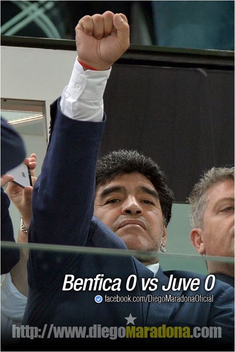 Diego Armando Maradona, presente allo Juventus Stadium per la semifinale di Europa League Juventus-Benfica, ha esultato per la qualificazione dei portoghesi in finale confermando le dichiarazioni del suo avvocato Angelo Pisani ai nostri microfoni in esclusiva (clicca qui per leggerle).